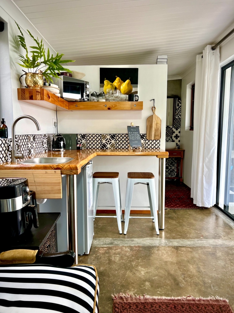 This black and white checkered beauty lures you into a 'Karoo by the Sea' tranquillity. You will be captivated with her sea views and ambiance. We have resurrected the servant quarters to white house status and boast with a delightful stoep barbecue overlooking beautiful Mossel Bay. It is quaint, it is private and portent with memory making opportunities. Salt and Pepper with her classy Karoo heart promises to be an impressive memory forever!