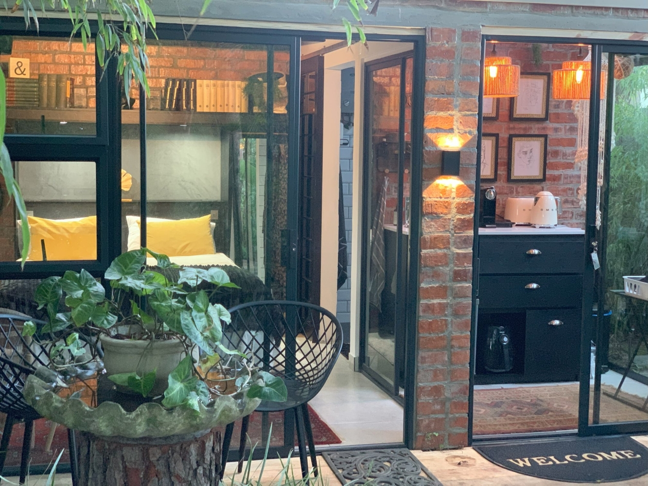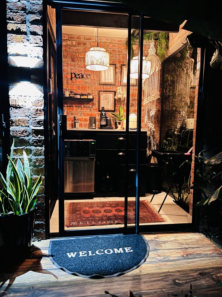 The unit opens up to a beautiful tranquil garden with more outdoor seating as well as a braai. Secure parking is available on the premises.